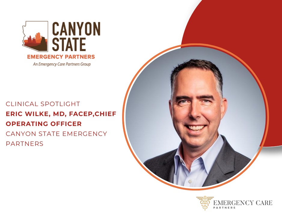 February 9, 2026 | Emergency Care Partners (ECP) and Canyon State Emergency Partners (CSEP) are honored to recognize Dr. Eric Wilke, MD, FACEP, Chief Operating Officer, for his exceptional leadership and meaningful contributions to emergency medicine. His work reflects a passion shaped by experience and a deep responsibility to serve during life’s most critical moments.